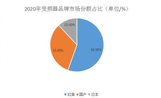 近年來(lái),進(jìn)口品牌替代的進(jìn)程不斷推進(jìn),國(guó)產(chǎn)變頻器品牌逐漸占據(jù)日本品牌的市場(chǎng)份額。2017年至2020年,日系品牌的市場(chǎng)份額逐年下降,國(guó)產(chǎn)品牌上升并保持在33%左右,而歐美品牌仍然占據(jù)了較大的市場(chǎng)份額。2020年歐美品牌在市場(chǎng)中份額為56%,國(guó)產(chǎn)品牌所占的份額為33%,日系品牌所占市場(chǎng)份額緊隨其后。